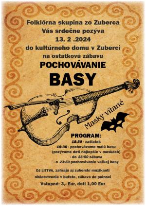 Folklórna skupina zo Zuberca Vás srdečne pozýva v utorok 13. februára 2024 o 18,30 do kultúrneho domu na ostatkovú zábavu. Masky vítané. Vstupné 3 €.