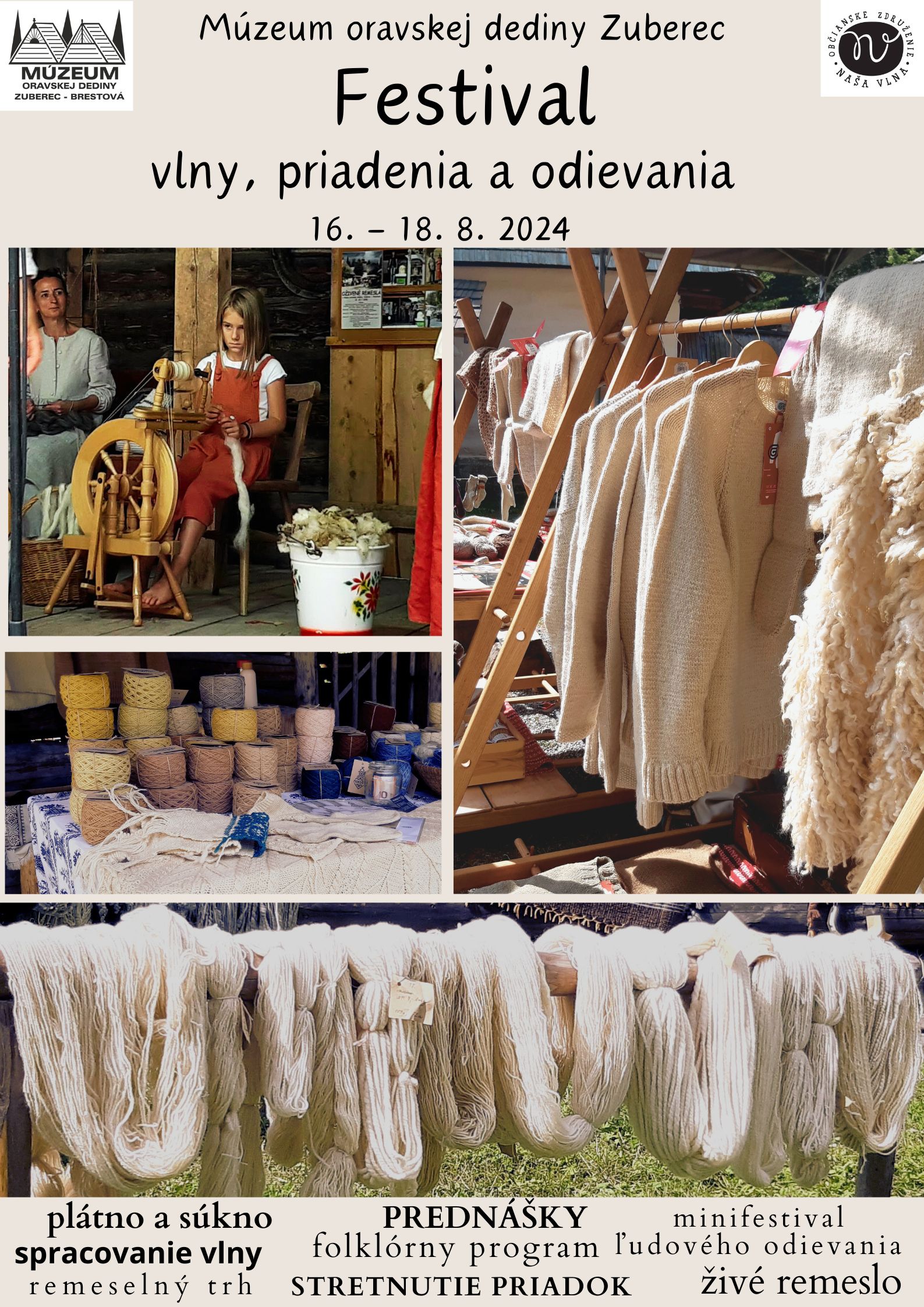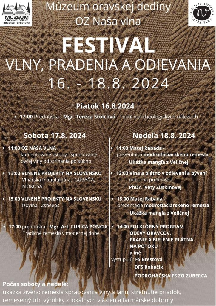 V dňoch 16. - 18. augusta 2024 sa v Múzeu oravskej dediny uskutoční Festival vlny, pradenia a odievania, ktorý organizuje OZ Naša vlna.