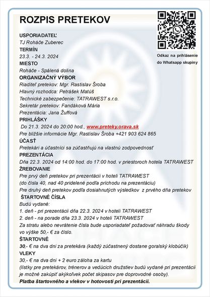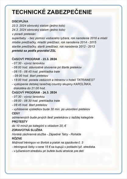 V dňoch 23. - 24. marca 2024 sa v Lyžiarskom stredisku Roháče - Spálená uskutoční 50. ročník lyžiarskych pretekov O Goralský klobúčik.