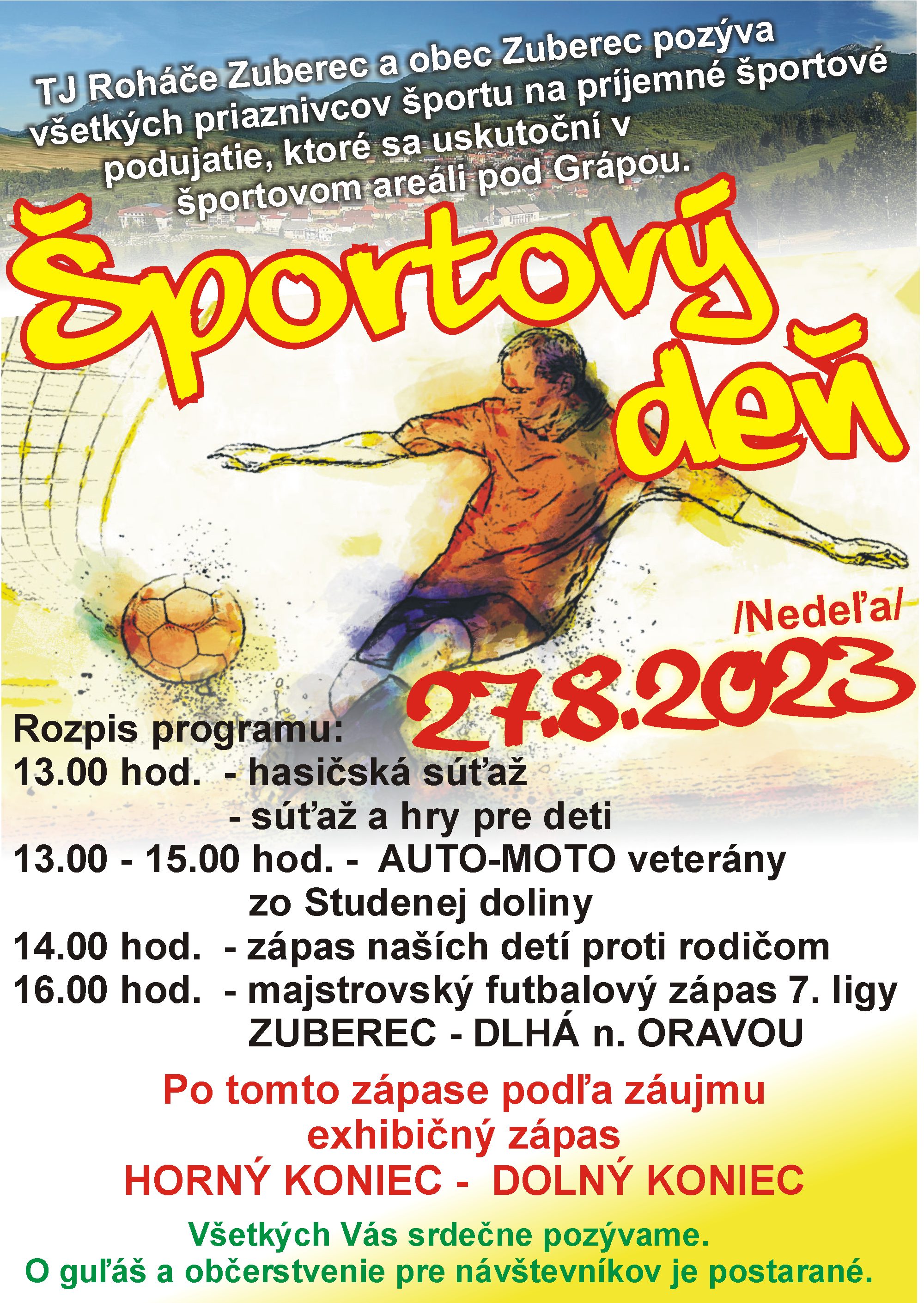 16.00 hod. - majstrovský futbalový zápas 7. ligy Zuberec - Dlhá nad Oravou