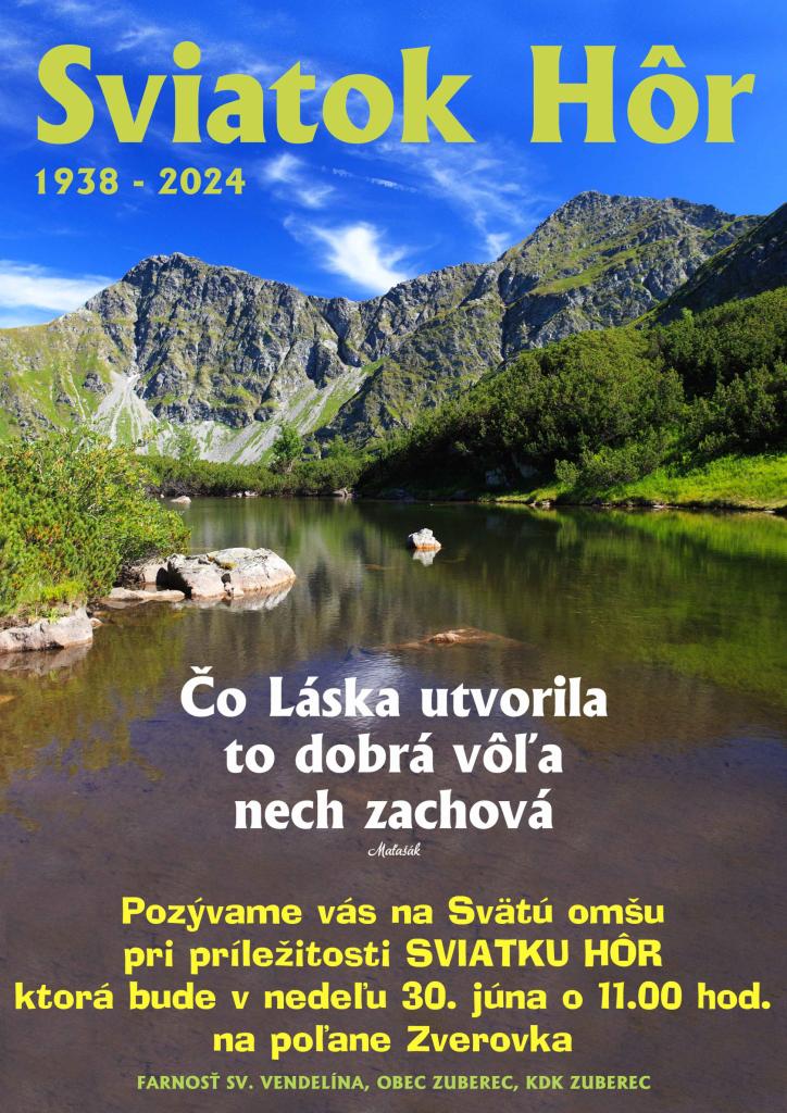 Pozývame Vás na sv. omšu pri príležitosti Sviatku hôr, ktorá bude v nedeľu 30. júna 2024 o 11.00 hod. na poľane Zverovka.